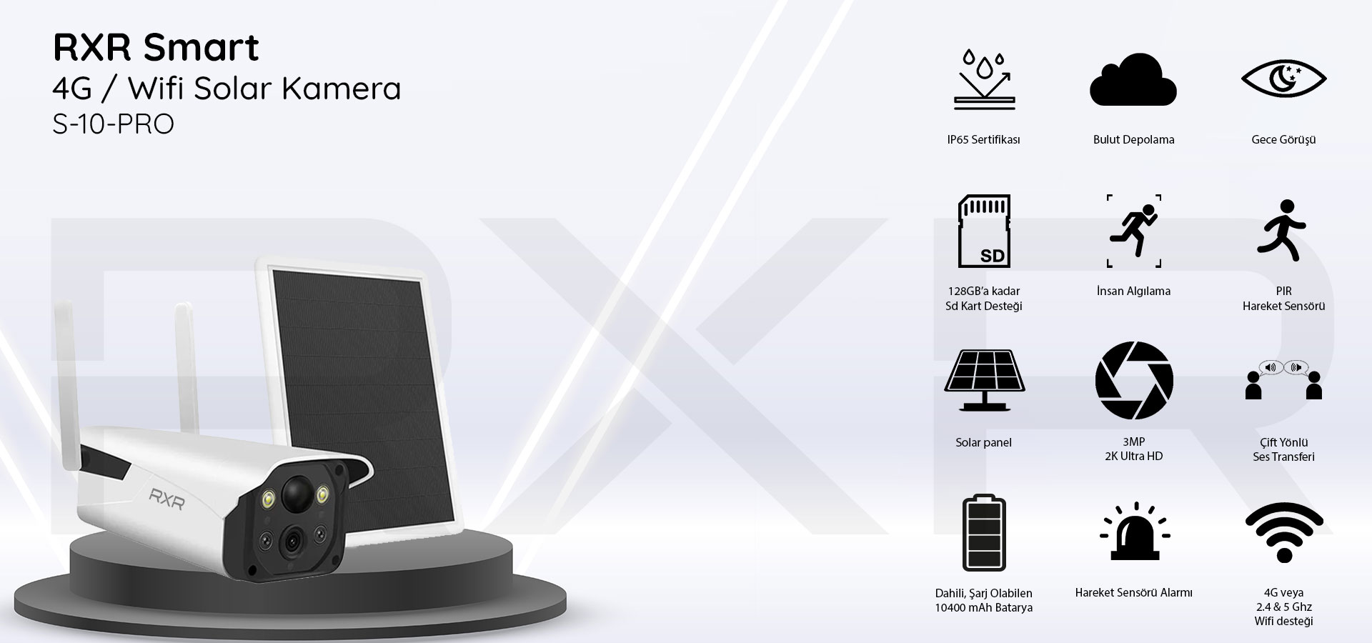 içerisinden Çıkmaz), Dahili Mikrofon ve Hoparlör,DC 5V 1A, Bulut kayıt Desteği (Opsiyonel), IOS ve Android için RXR Smart mobil uygulaması.